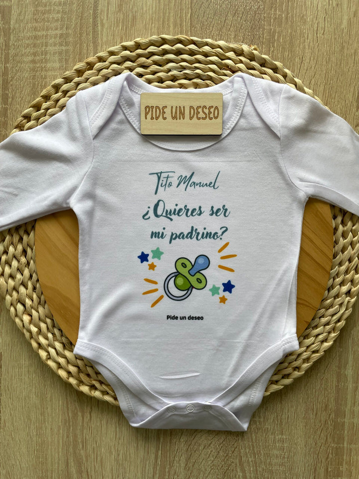 Características: Body personalizado. Tiene tres botones de presión en la parte inferior para facilitar la colocación del pañal. Cuello con hombros montados con obertura amplia para pasar fácilmente por la cabeza. Talla disponible 0-3 meses. Precauciones: