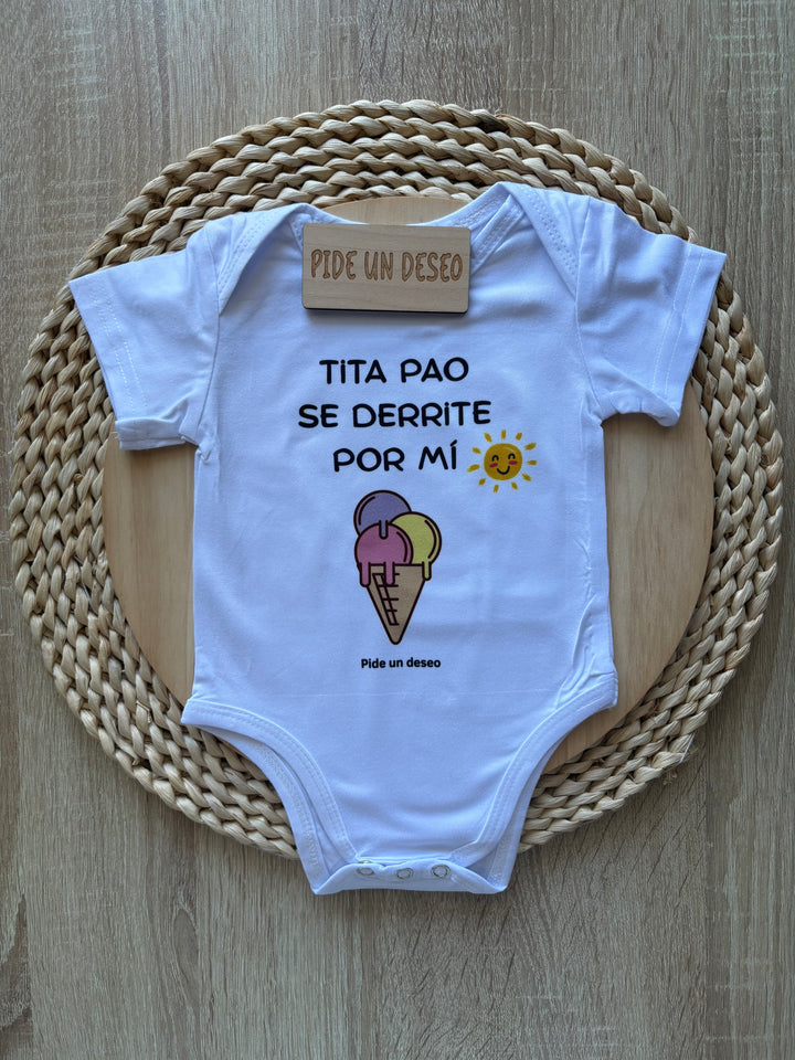 Características: Body personalizado. Tiene tres botones de presión en la parte inferior para facilitar la colocación del pañal. Cuello con hombros montados con obertura amplia para pasar fácilmente por la cabeza. Talla disponible 0-3 meses. Precauciones: