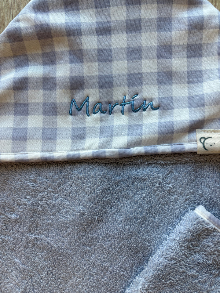 Capa de baño vichy personalizada y manopla para Bebé con Nombre Bordado – 100% algodón