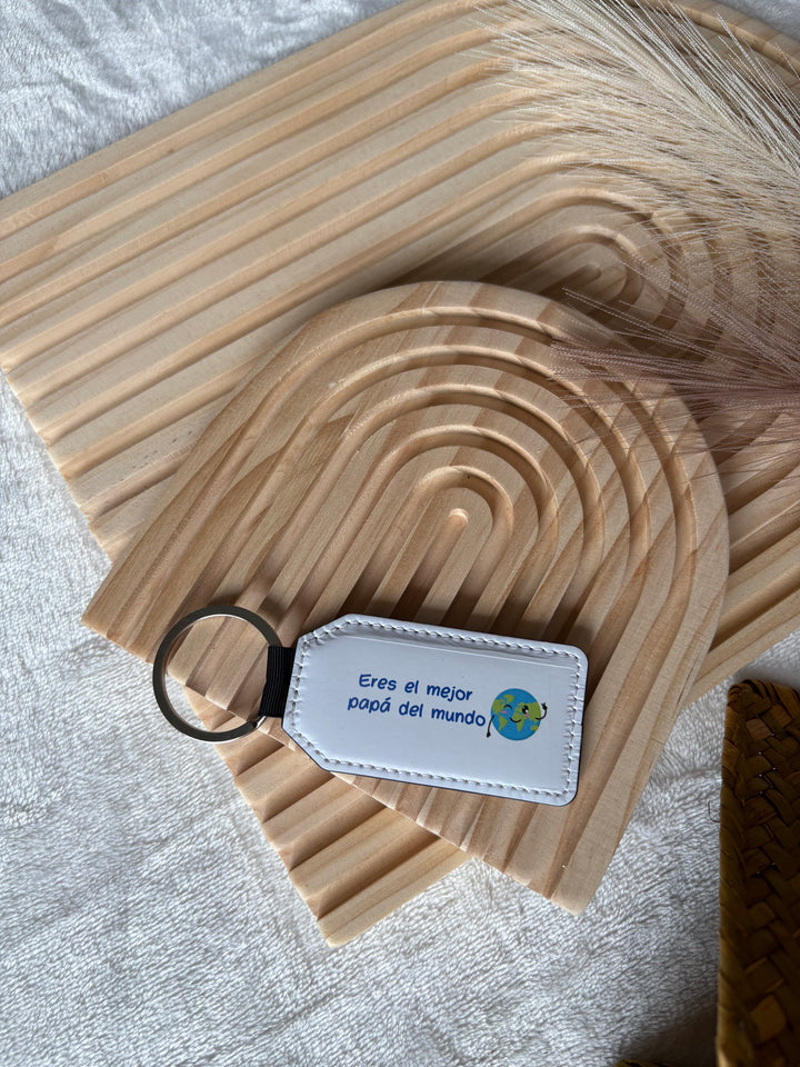 Un llavero de polipiel con un mensaje grabado, como «Te quiero, papá», «Eres el mejor padre», o una cita que él siempre haya dicho. También puede ser una fecha importante, como su cumpleaños o el día que nació su hijo/a.