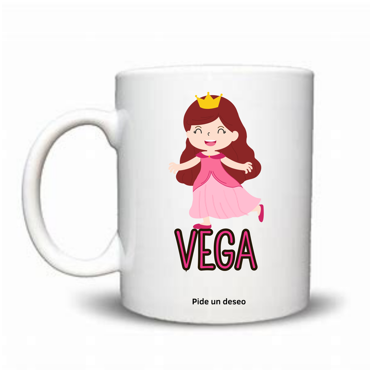 Taza de cerámica de 350 ml de capacidad, de color blanco con acabado brillo.